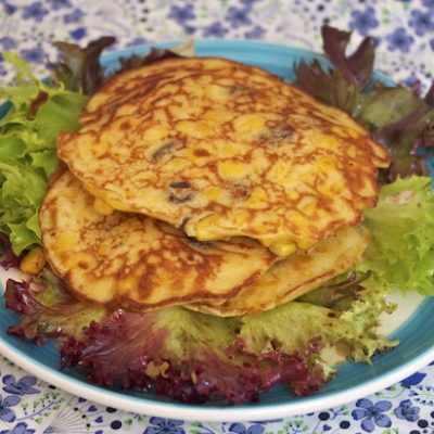 4. Servez les galettes de maïs bien chaudes sur une petite salade verte.