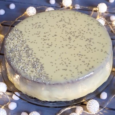 - Décorez l’entremets selon votre goût (je l’ai parsemé de petits étoiles argentées). Réservez-le au réfrigérateur au minimum 6h pour qu’il soit complètement décongelé lors de la dégustation.